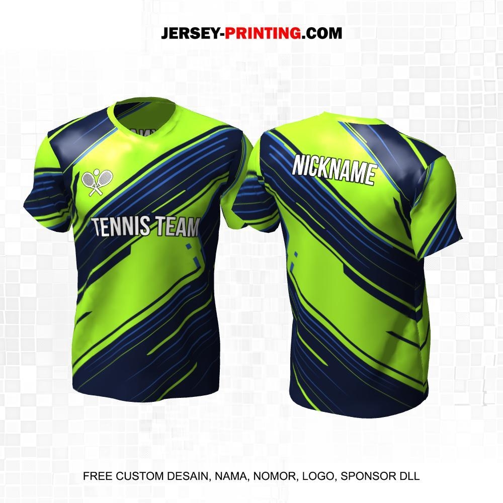 Jersey Tenis Navy Hijau Motif Abstrak Garis 121
