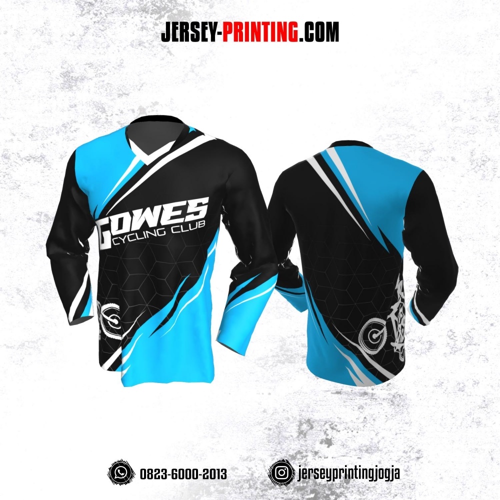 Jersey Gowes Sepeda Hitam Biru Abu Putih Line 3D Lengan Panjang