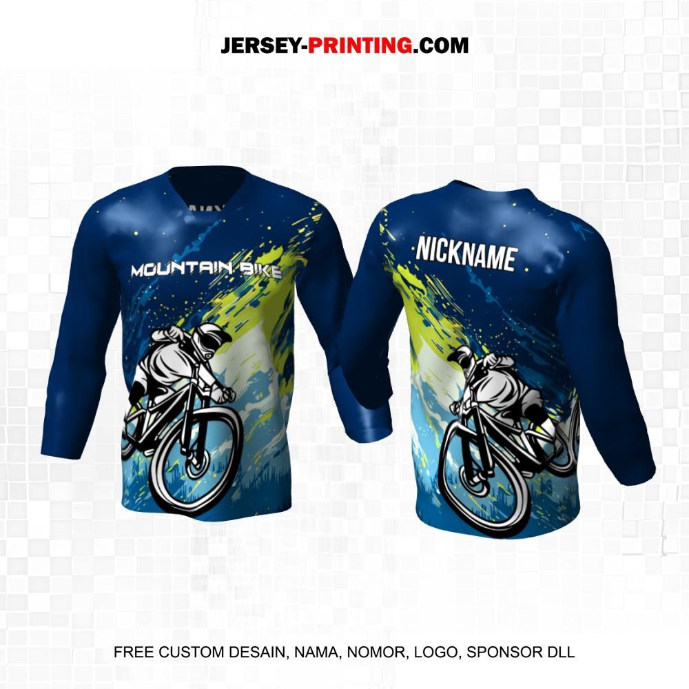Jersey Gowes Sepeda Downhill Navy Putih Hijau Motif Abstrak 142
