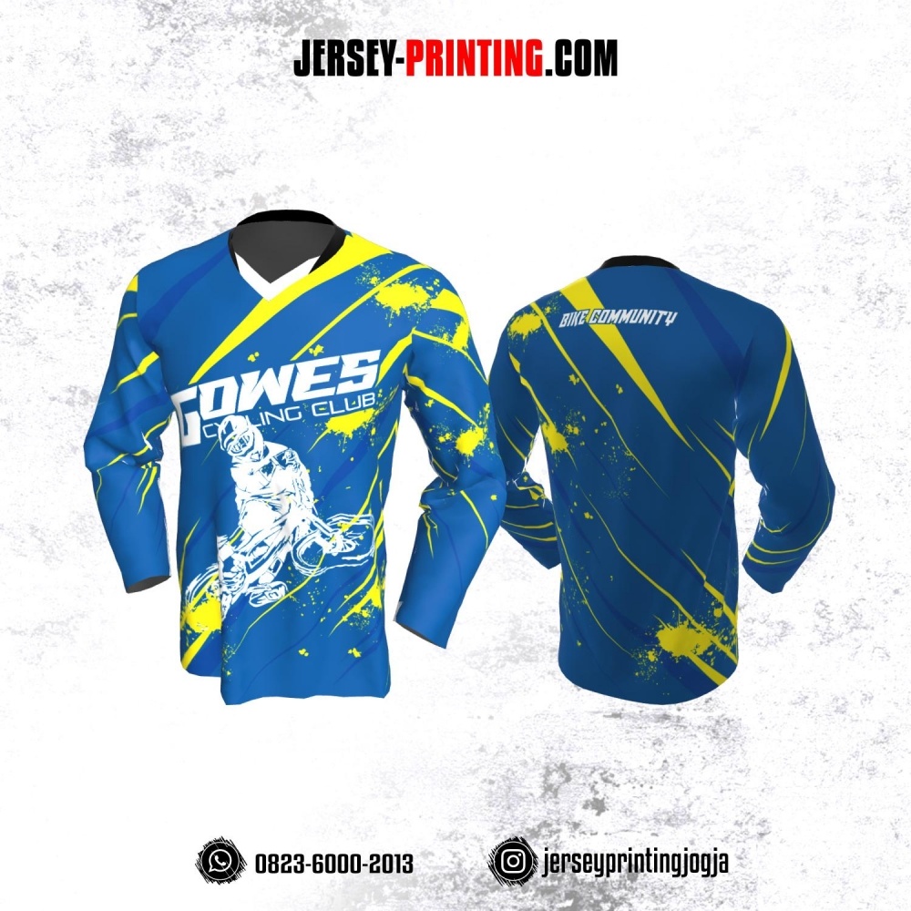 Jersey Gowes Sepeda Biru Kuning Putih Lengan Panjang