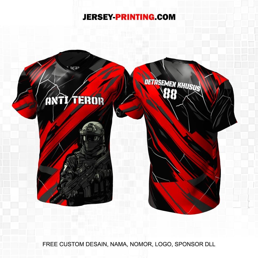 Jersey Polisi Polri Densus 88 Hitam Merah Motif Abstrak 38
