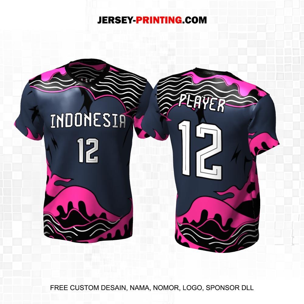 Jersey Basket Hitam Abu Pink Motif Ombak 149