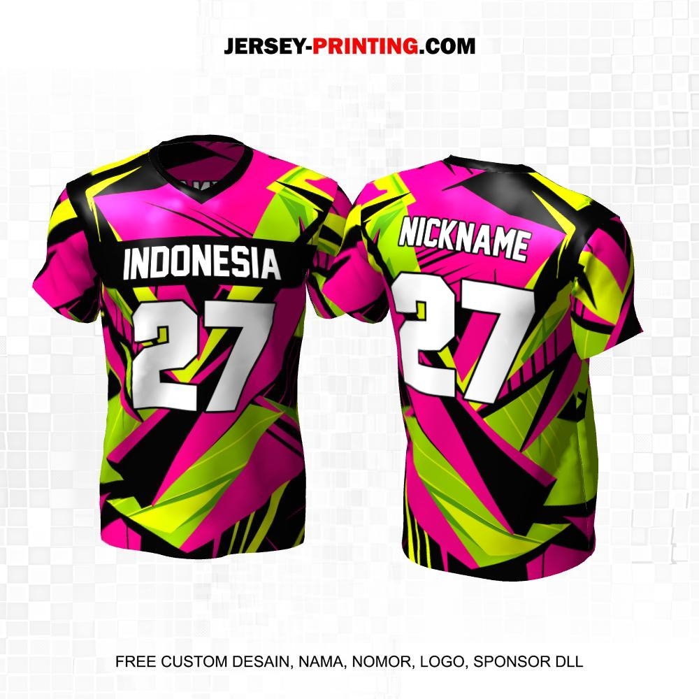 Jersey Futsal Retro Vintage Pink Hijau Hitam Motif Abstrak 616