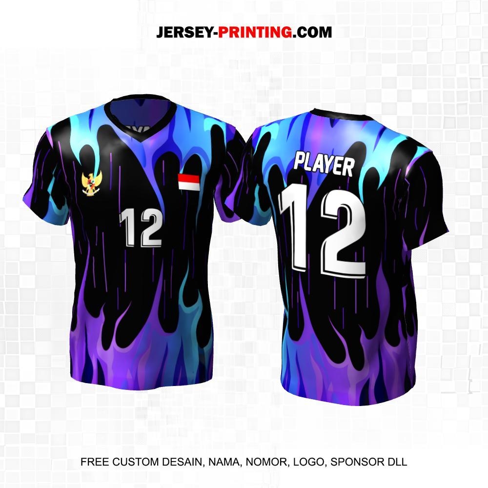 Jersey Volly Hitam Ungu Biru Motif Abstrak 442