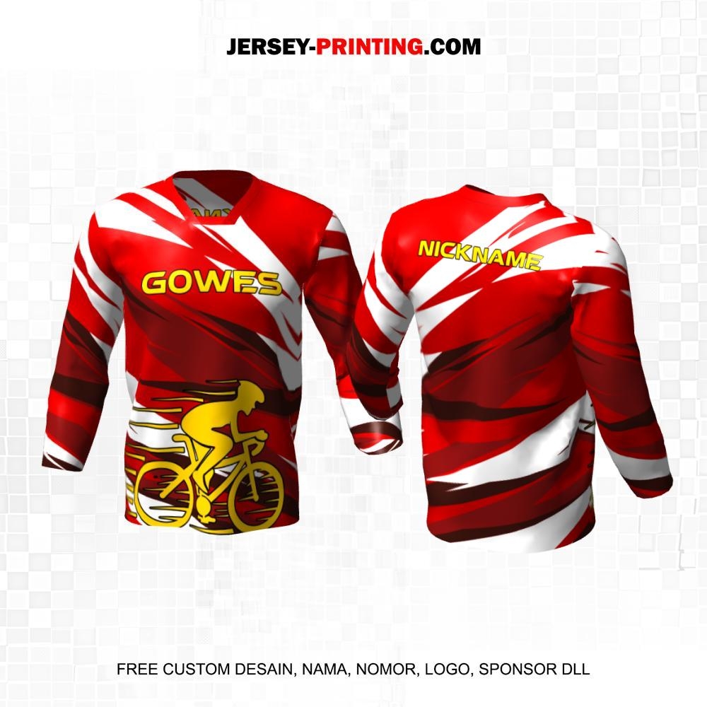 Jersey Gowes Sepeda Merah Putih Motif Abstrak 10