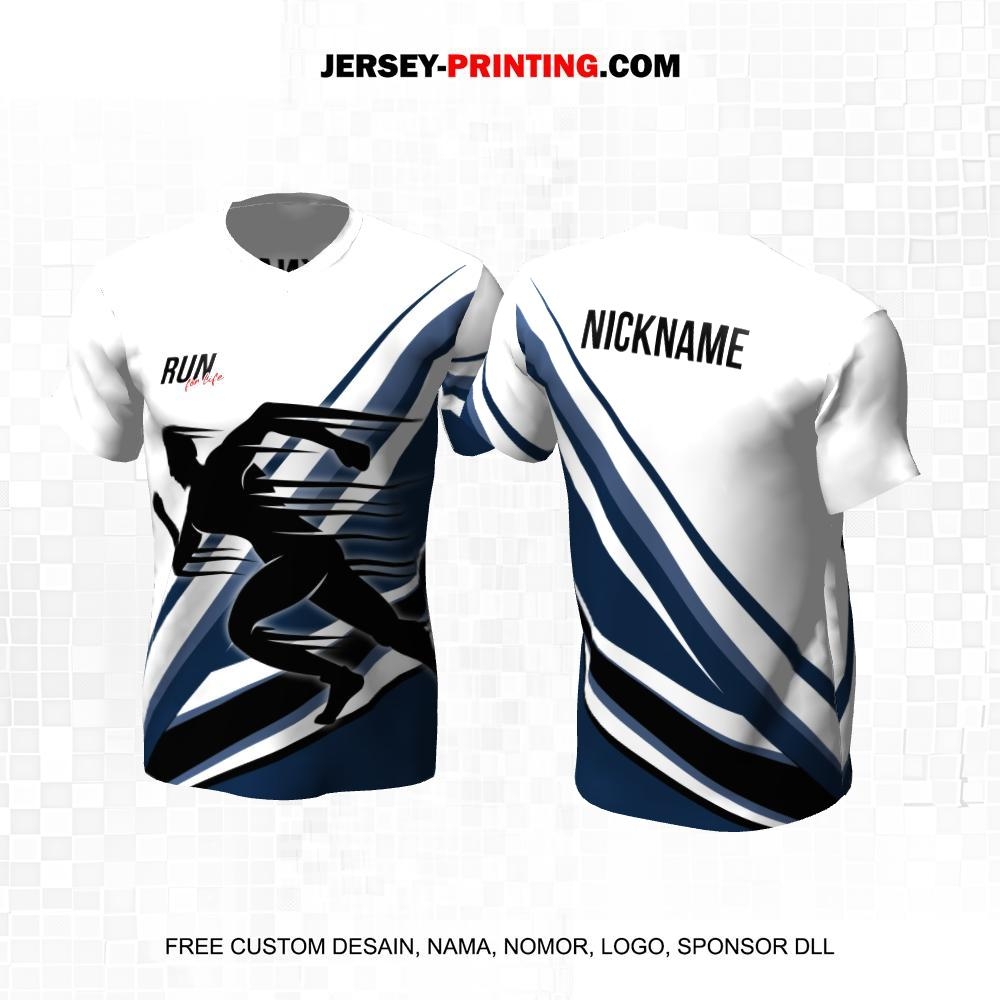 Jersey Lari Putih Navy Motif Abstrak 489