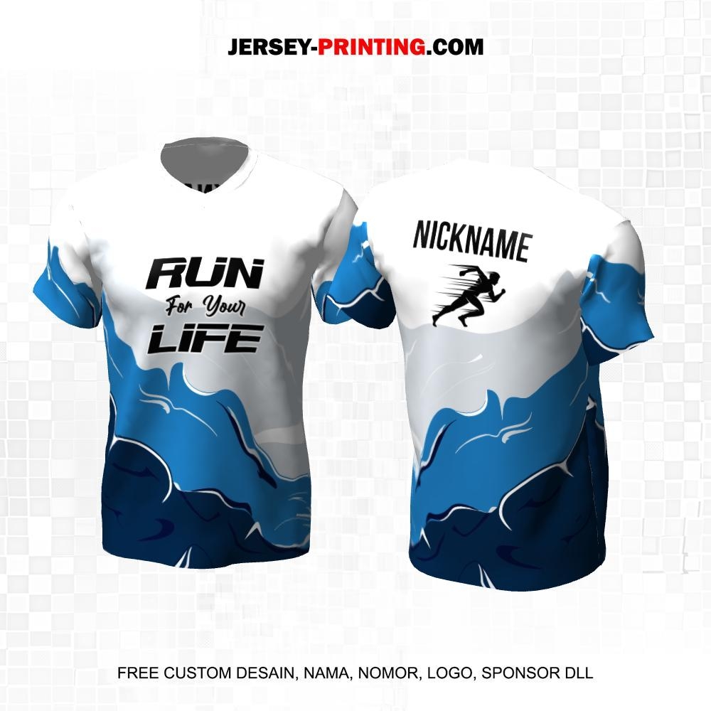 Jersey Lari Putih Biru Motif Abstrak 492