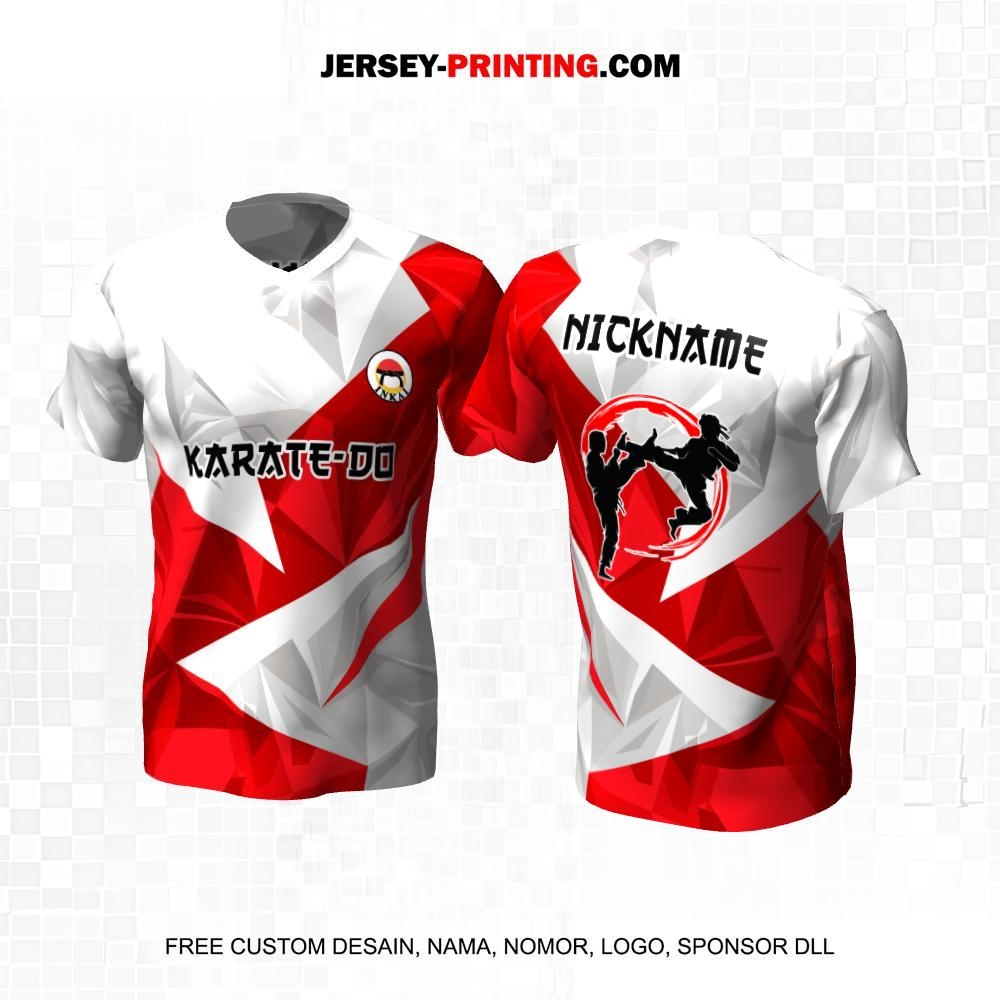 Jersey Karate Merah Putih Abu Motif Abstrak 258