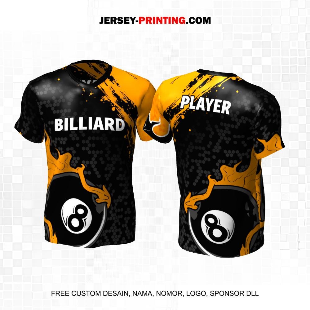 Jersey Billiard Hitam Orange Motif Abstrak Honeycomb Bola Api 25