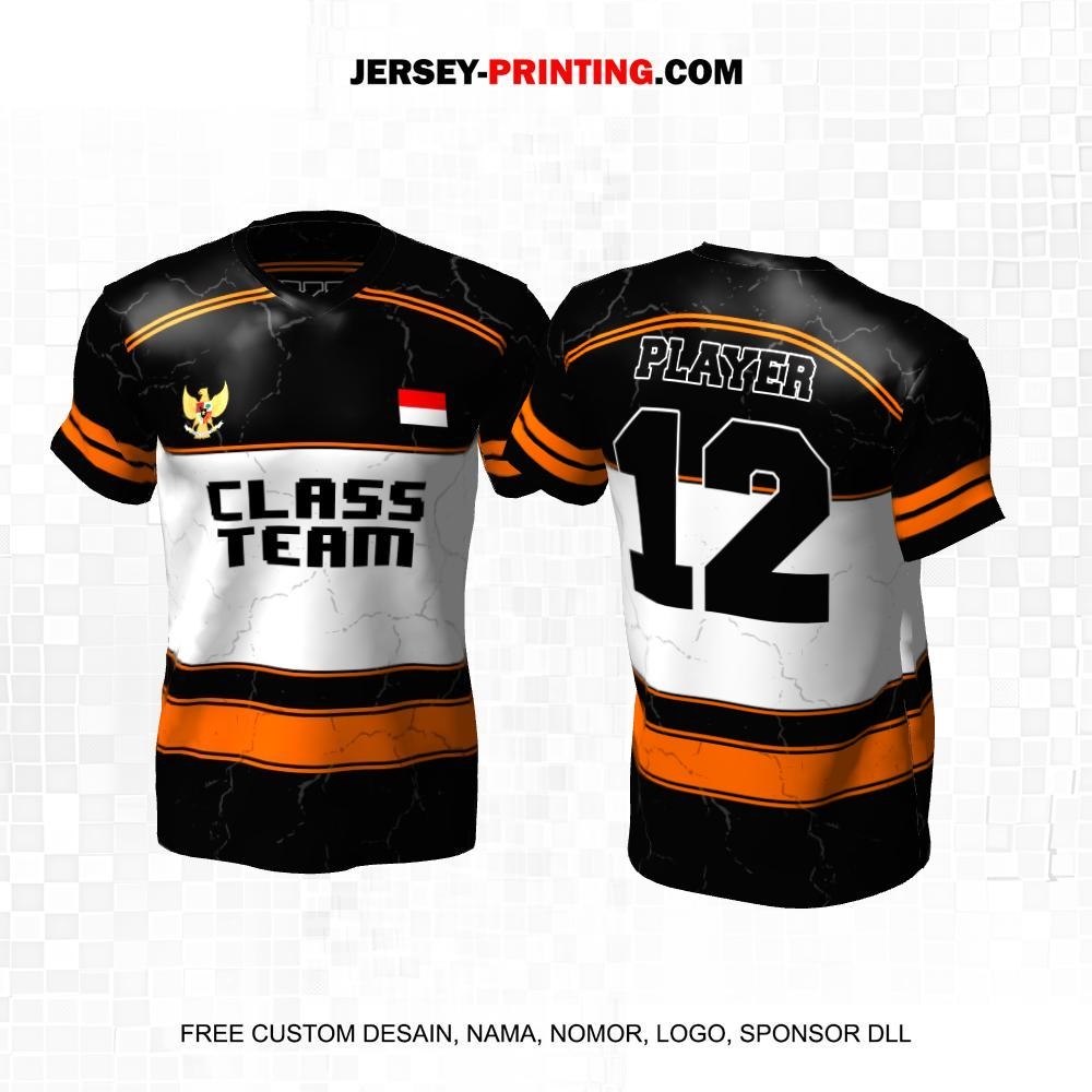 Jersey Kelas Hitam Putih Orange Motif Garis Retakan 07