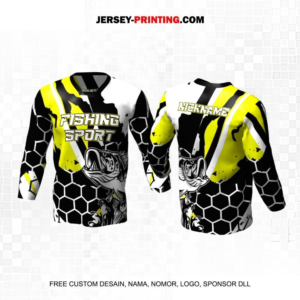 Jersey Mancing Fishing Angler Hitam Putih Hijau Motif Abstrak Honeycomb 30