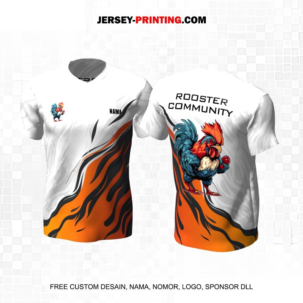 Jersey Ayam Petarung Putih Orange Motif Abstrak 01