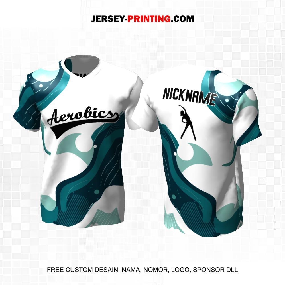 Jersey Olahraga Senam Aerobik Fitness Putih Hijau Tosca Motif Abstrak 05