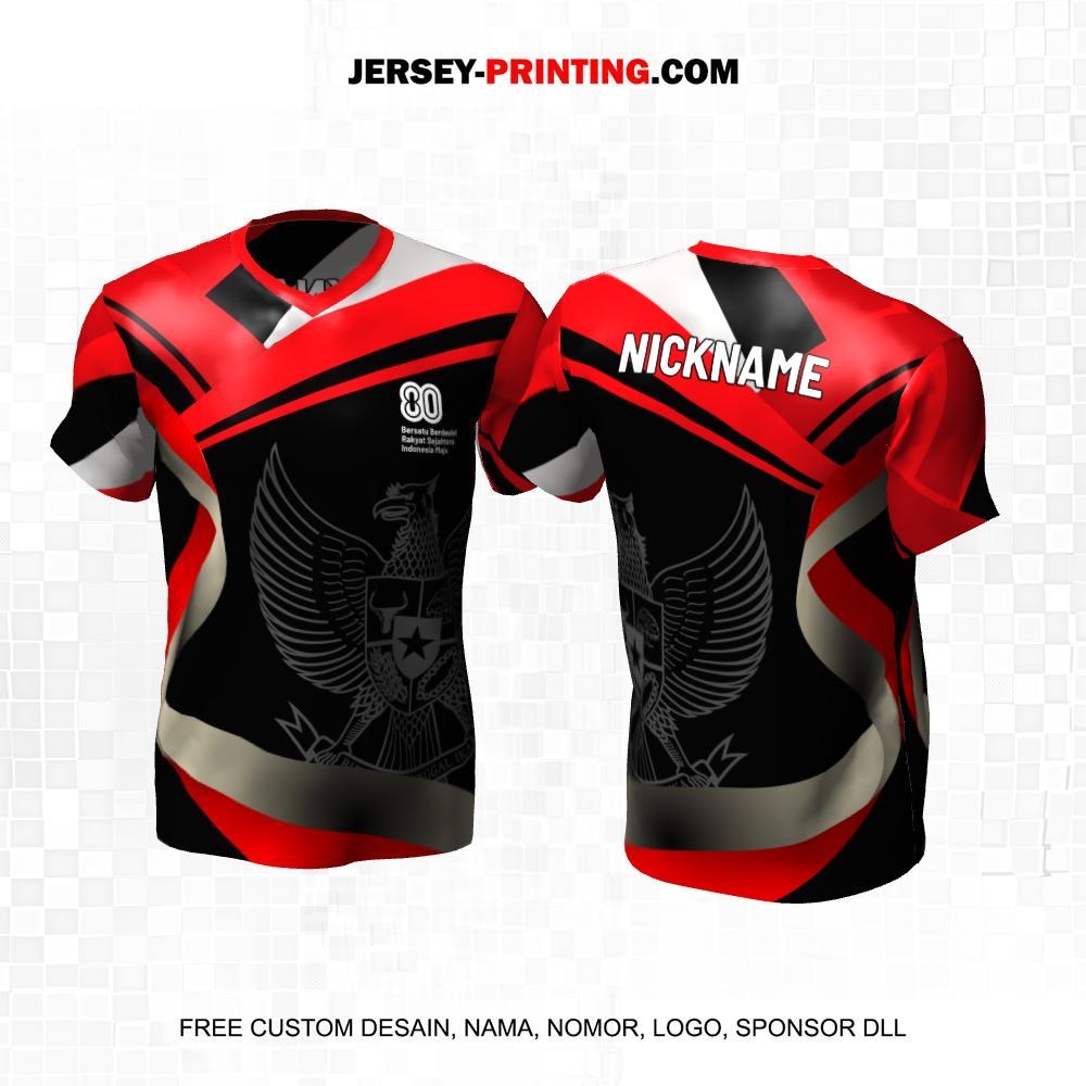 Jersey HUT RI 80 Kemerdekaan Indonesia 17 Agustus Hitam Merah Motif Abstrak Garuda 163
