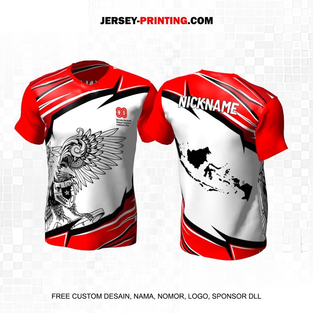 Jersey HUT RI 80 Kemerdekaan Indonesia 17 Agustus Putih Merah Hitam Motif Abstrak Garuda Peta 179