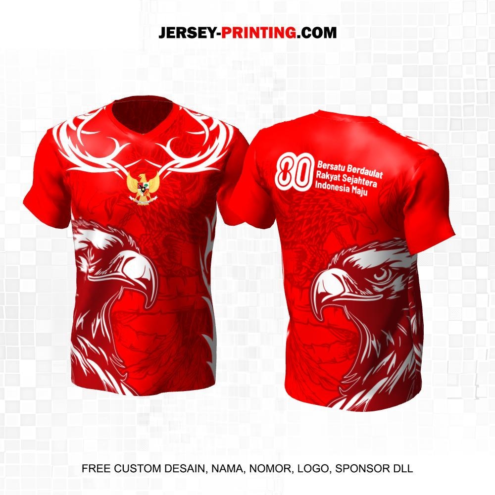 Jersey HUT RI 80 Kemerdekaan Indonesia 17 Agustus Merah Motif Burung Elang 214