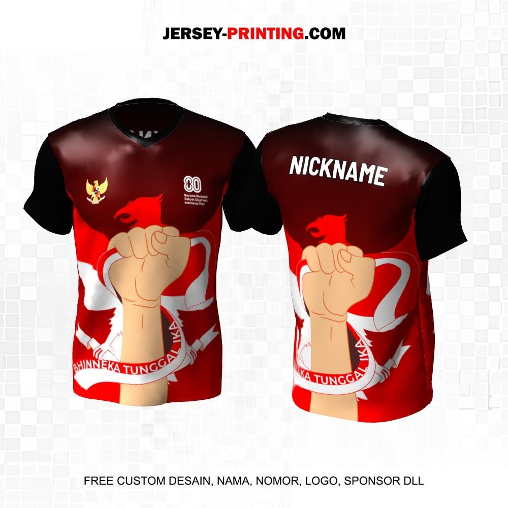 Jersey HUT RI 80 Kemerdekaan Indonesia 17 Agustus Hitam Merah Putih Motif Garuda Genggaman Bendera 215