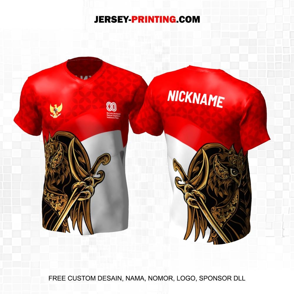 Jersey HUT RI 80 Kemerdekaan Indonesia 17 Agustus Merah Putih Motif Batik Garuda 218