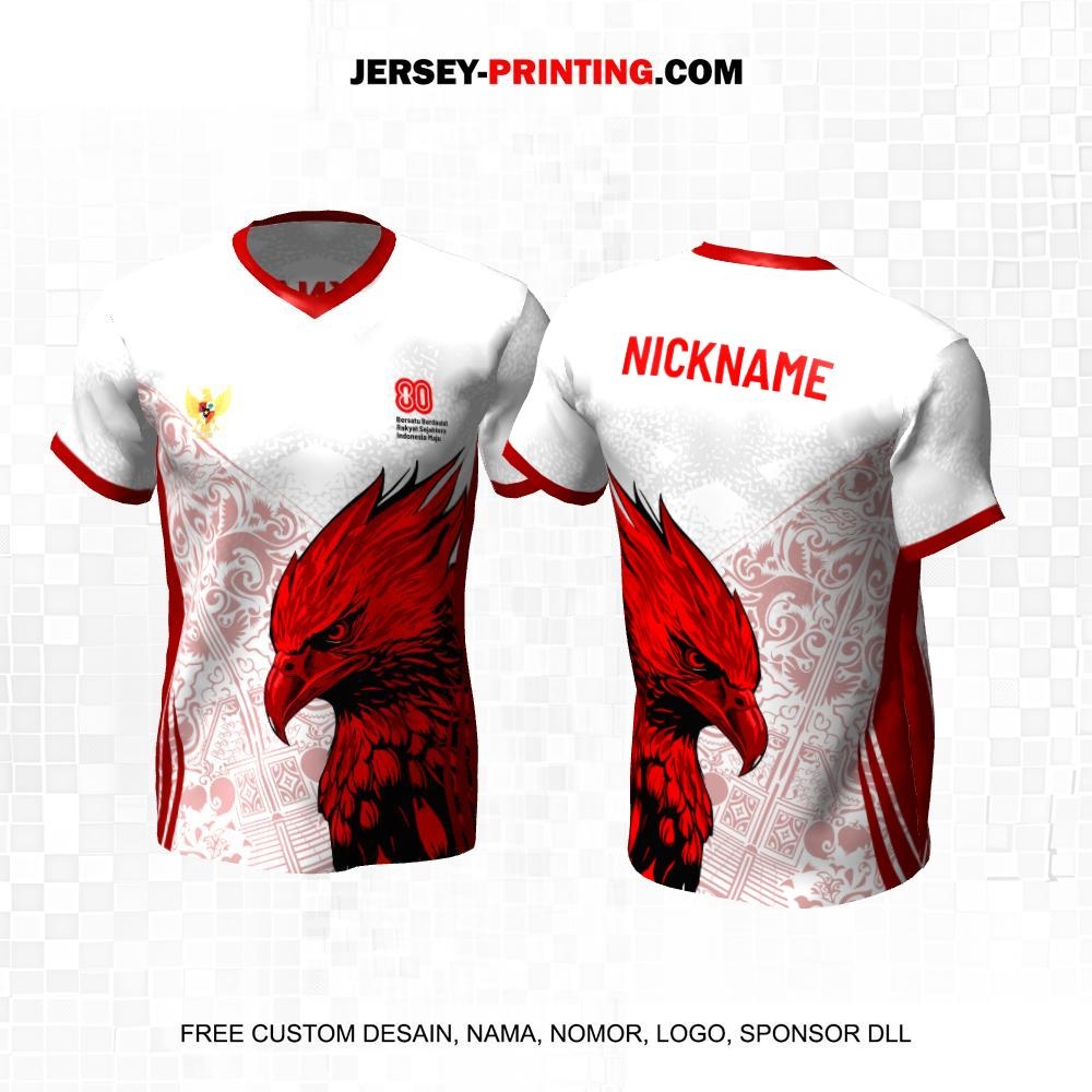 Jersey HUT RI 80 Kemerdekaan Indonesia 17 Agustus Putih Merah Motif Abstrak Gunungan Elang 222