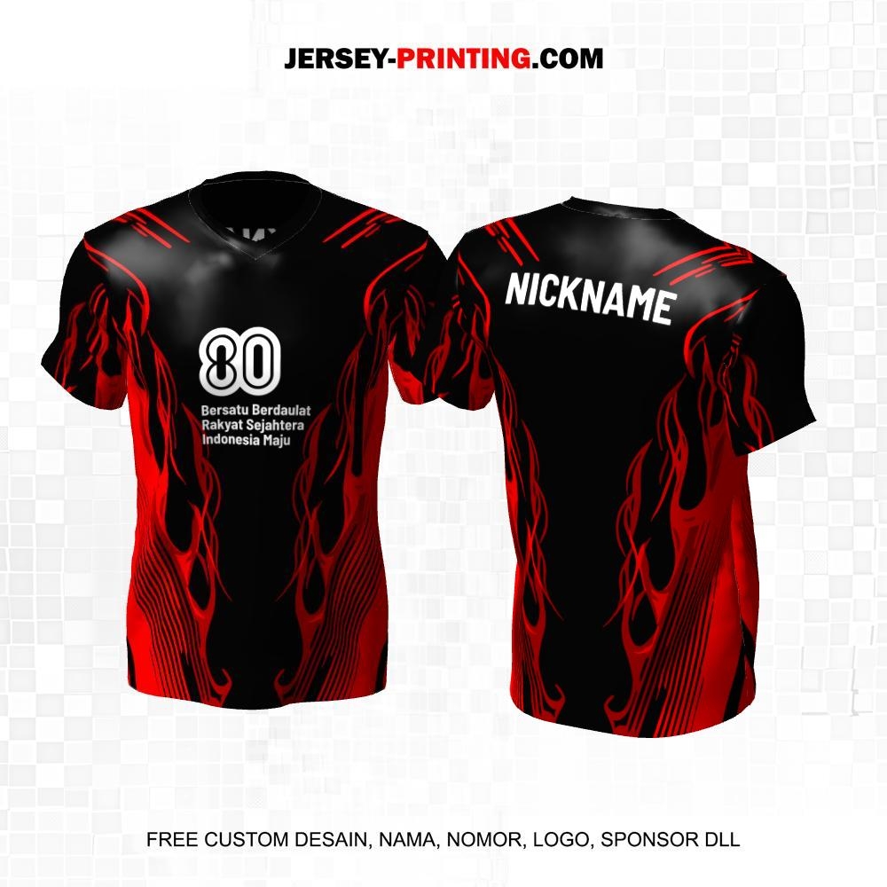 Jersey HUT RI 80 Kemerdekaan Indonesia 17 Agustus Hitam Merah Motif Api 228