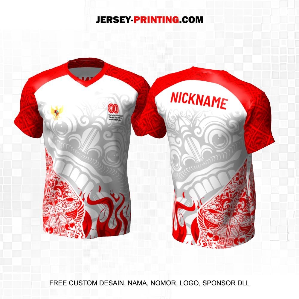 Jersey HUT RI 80 Kemerdekaan Indonesia 17 Agustus Putih Merah Motif Barong Batik Gunungan Api 234