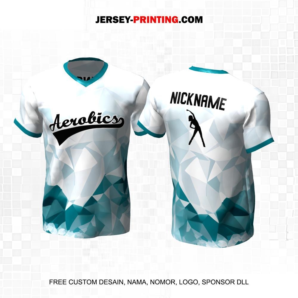Jersey Olahraga Senam Aerobik Fitness Putih Tosca Motif Abstrak Triangle 07