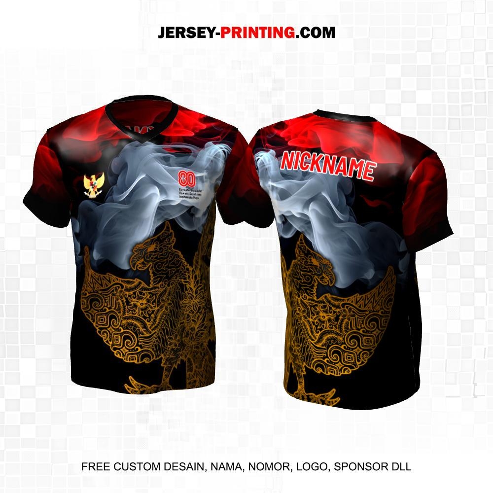 Jersey HUT RI 80 Kemerdekaan Indonesia 17 Agustus Hitam Merah Abu Motif Asap Garuda 256
