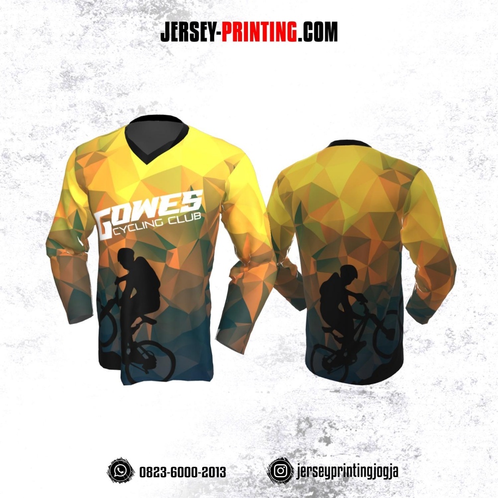 Jersey Gowes Sepeda Kuning Abu Diamond Lengan Panjang