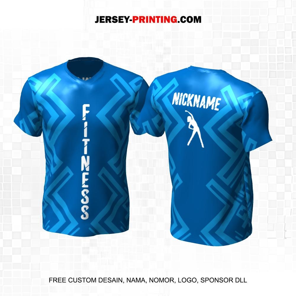 Jersey Olahraga Senam Aerobik Fitness Biru Motif Geometris 14