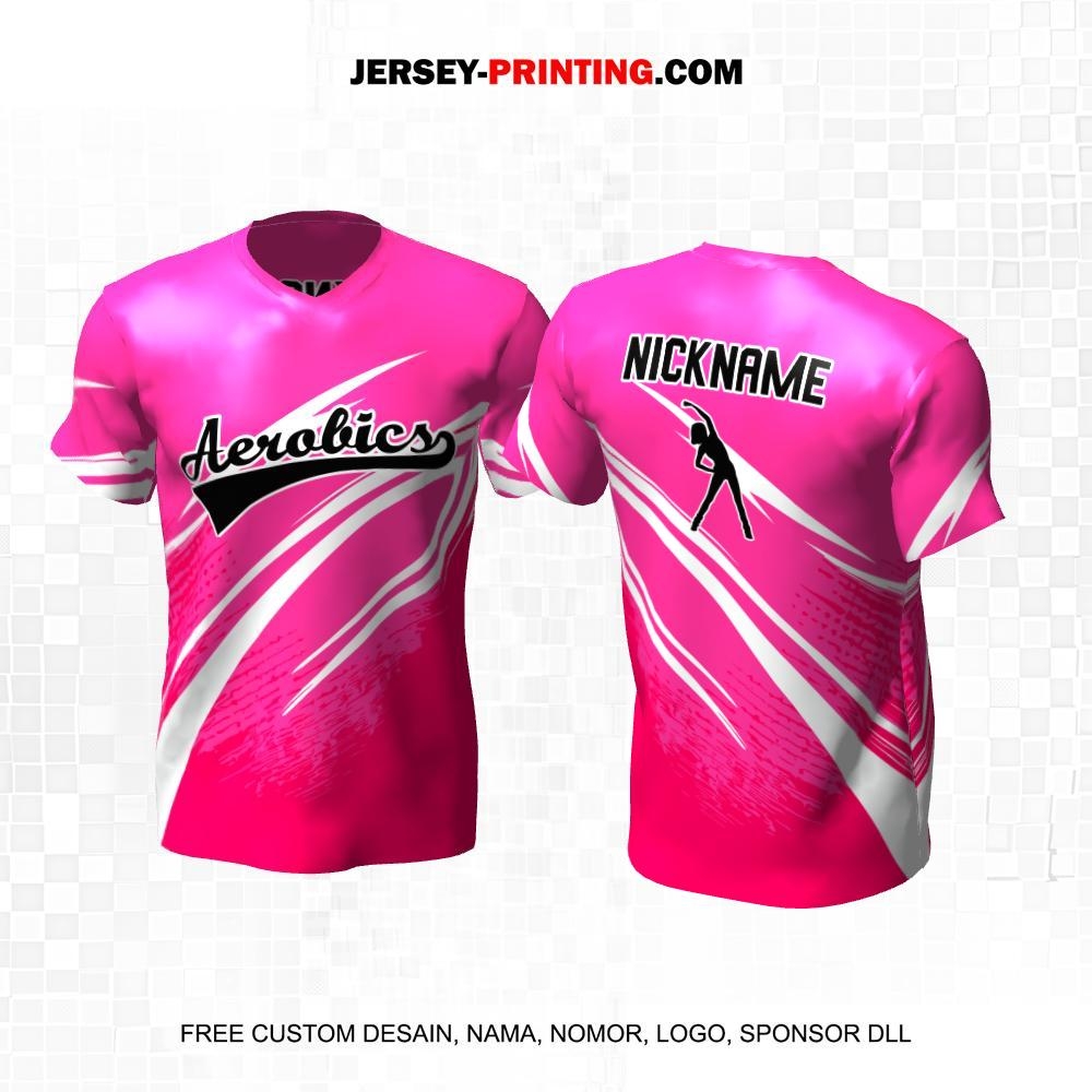 Jersey Olahraga Senam Aerobik Fitness Pink Putih Motif Abstrak 16