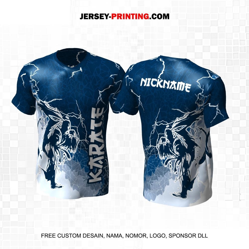 Jersey Karate Biru Putih Motif Abstrak Petir 259