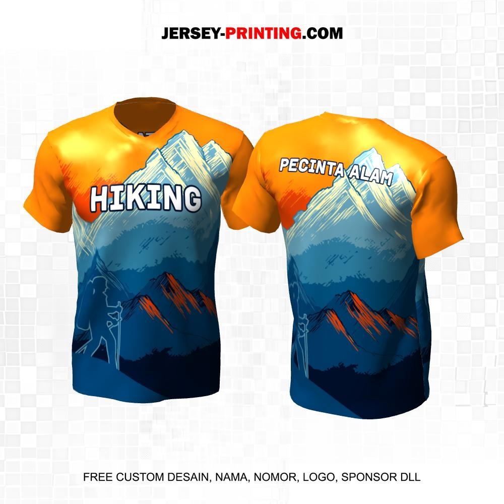 Jersey Pendaki Orange Biru Motif Pemandangan Alam Gunung 91