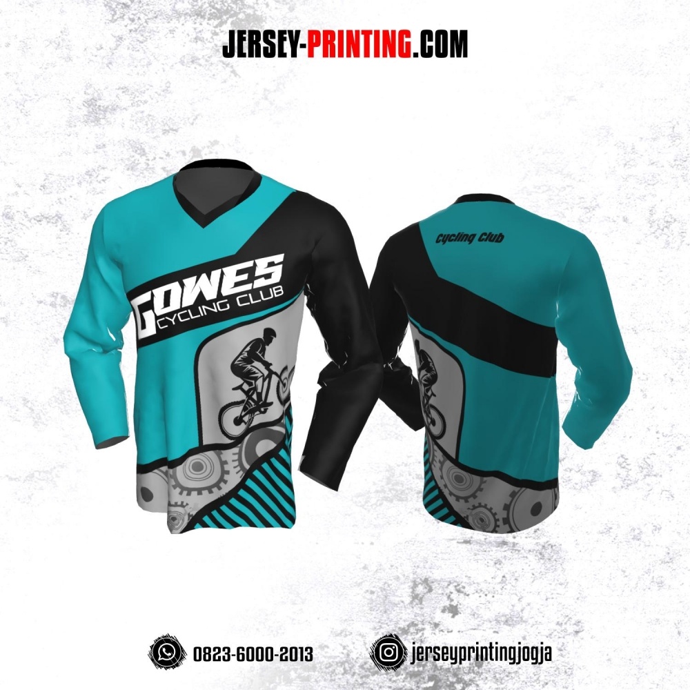 Jersey Gowes Sepeda Biru Hitam Abu Lengan Panjang