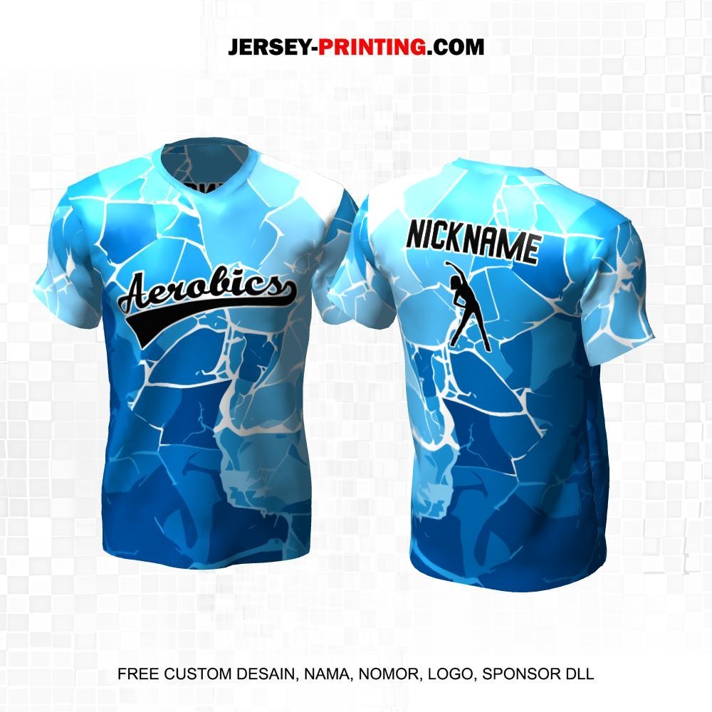 Jersey Olahraga Senam Aerobik Fitness Biru Motif Abstrak 19
