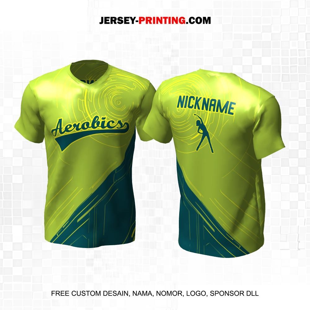 Jersey Olahraga Senam Aerobik Fitness Hijau Motif Abstrak 25