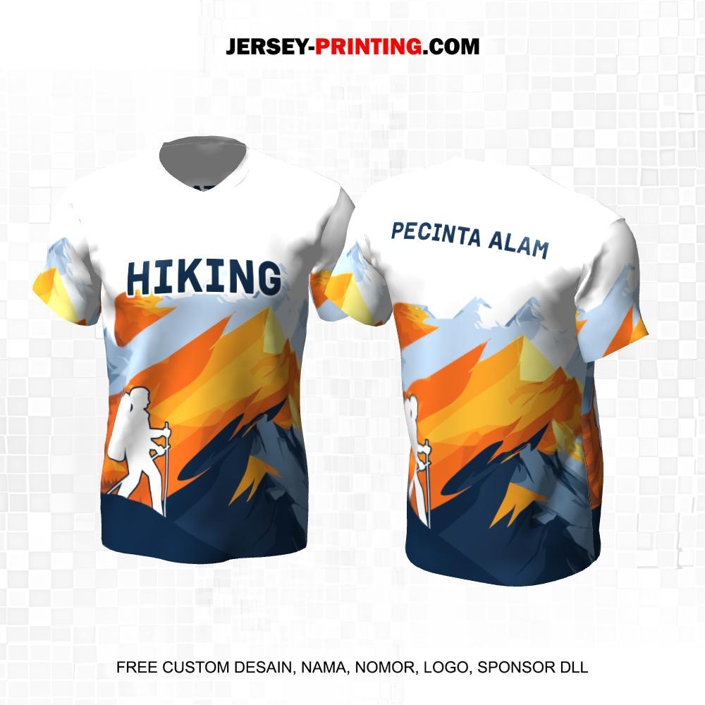 Jersey Pendaki Putih Orange Biru Motif Pemandangan Alam Gunung 93