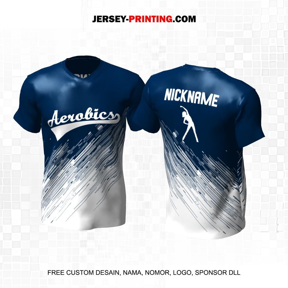 Jersey Olahraga Senam Aerobik Fitness Biru Putih Motif Abstrak 27