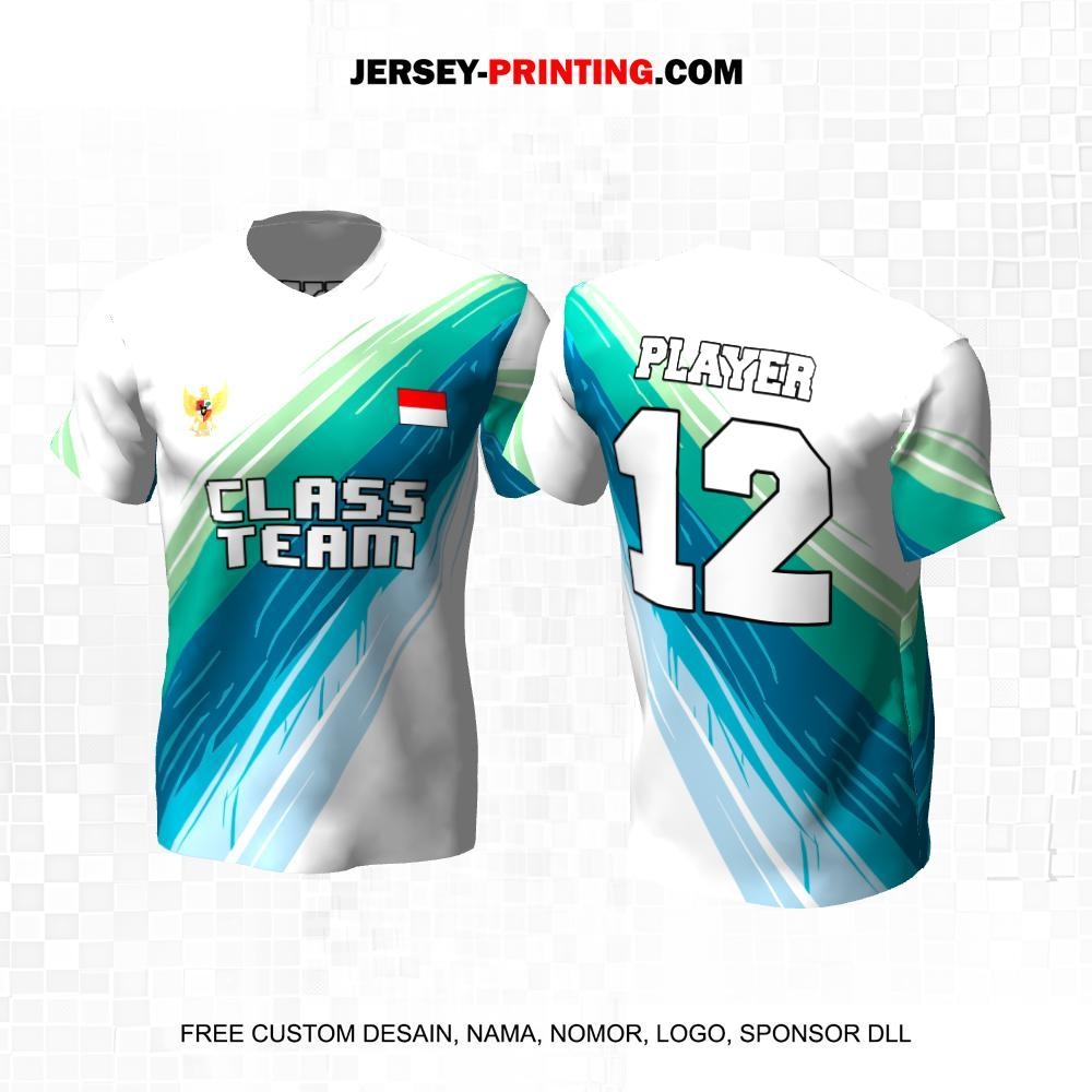 Jersey Kelas Putih Hijau Biru Motif Abstrak 58