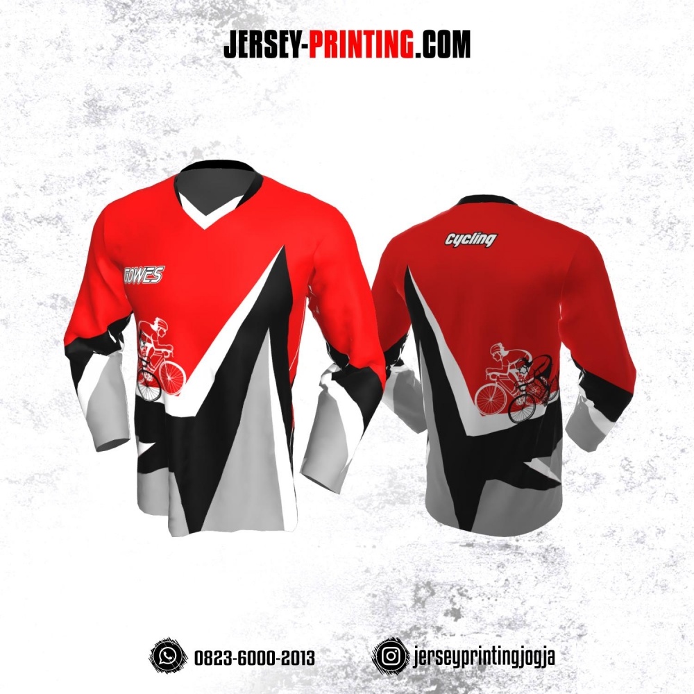 Jersey Gowes Sepeda Merah Hitam Abu Putih Lengan Panjang