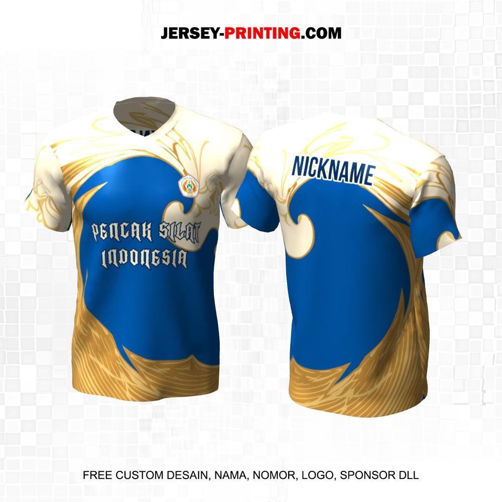 Jersey Pencak Silat Krem Biru Motif Abstrak 415