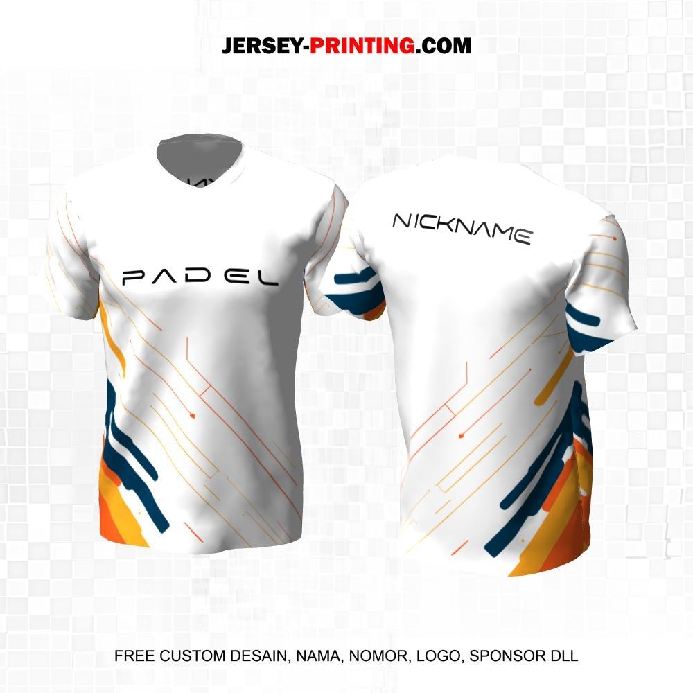 Jersey Olahraga Sport Padel Putih Orange Navy Motif Garis 06