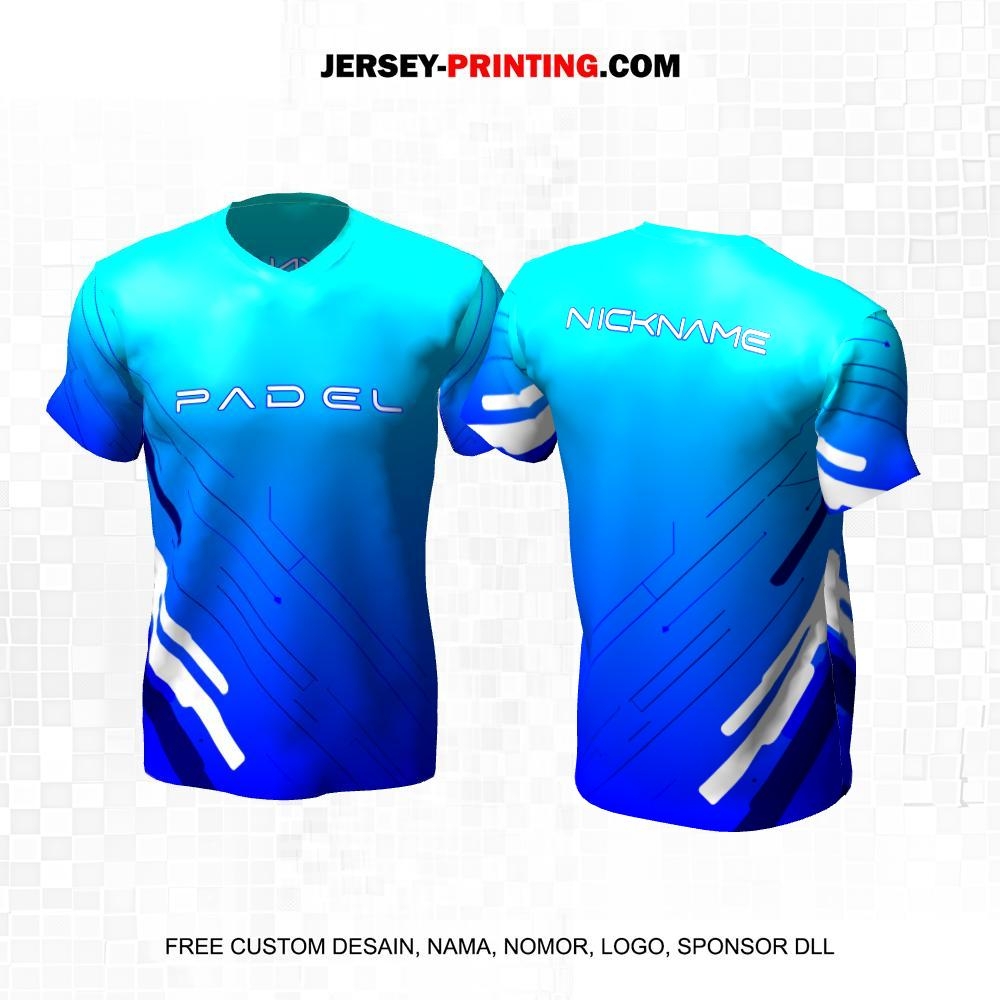 Jersey Olahraga Sport Padel Gradasi Biru Putih Motif Garis 07