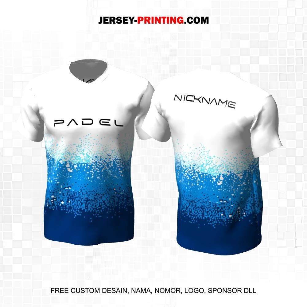 Jersey Olahraga Sport Padel Putih Biru Motif Abstrak 08