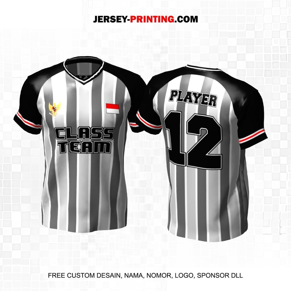 Jersey Kelas Retro Hitam Putih Abu Motif Garis 65