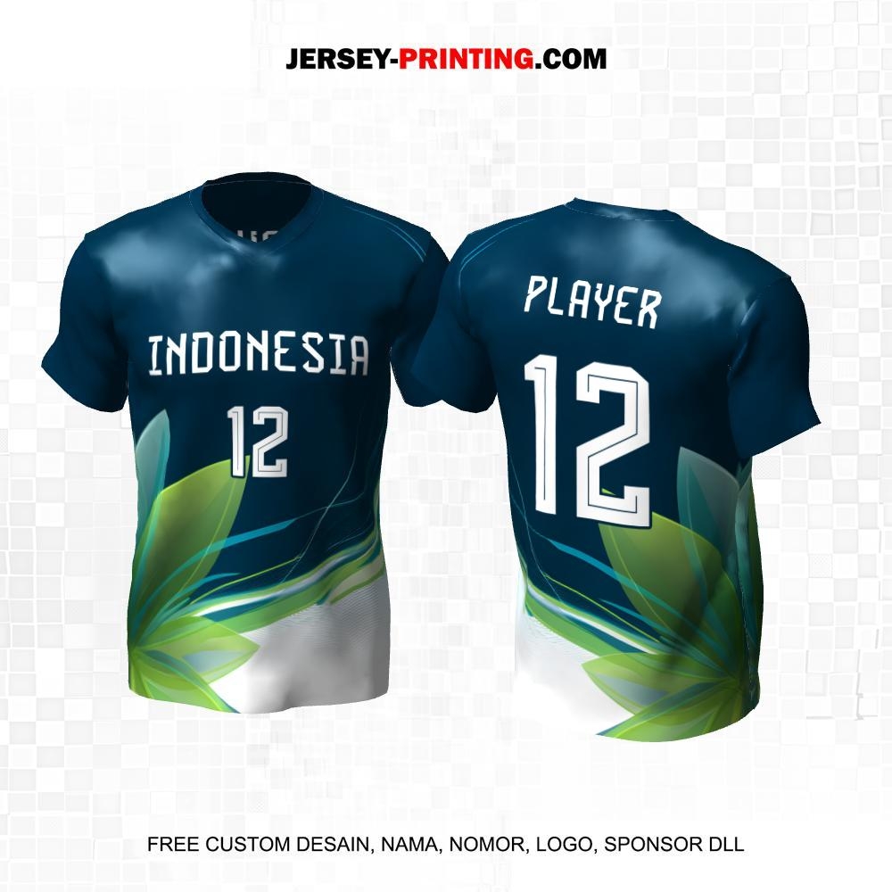 Jersey Basket Navy Hijau Putih Motif Daun 174