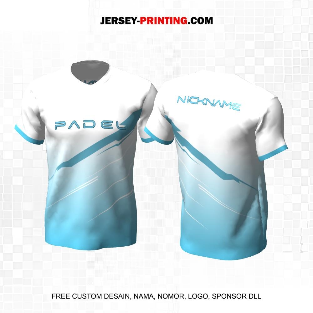Jersey Olahraga Sport Padel Putih Biru Motif Geometris 22