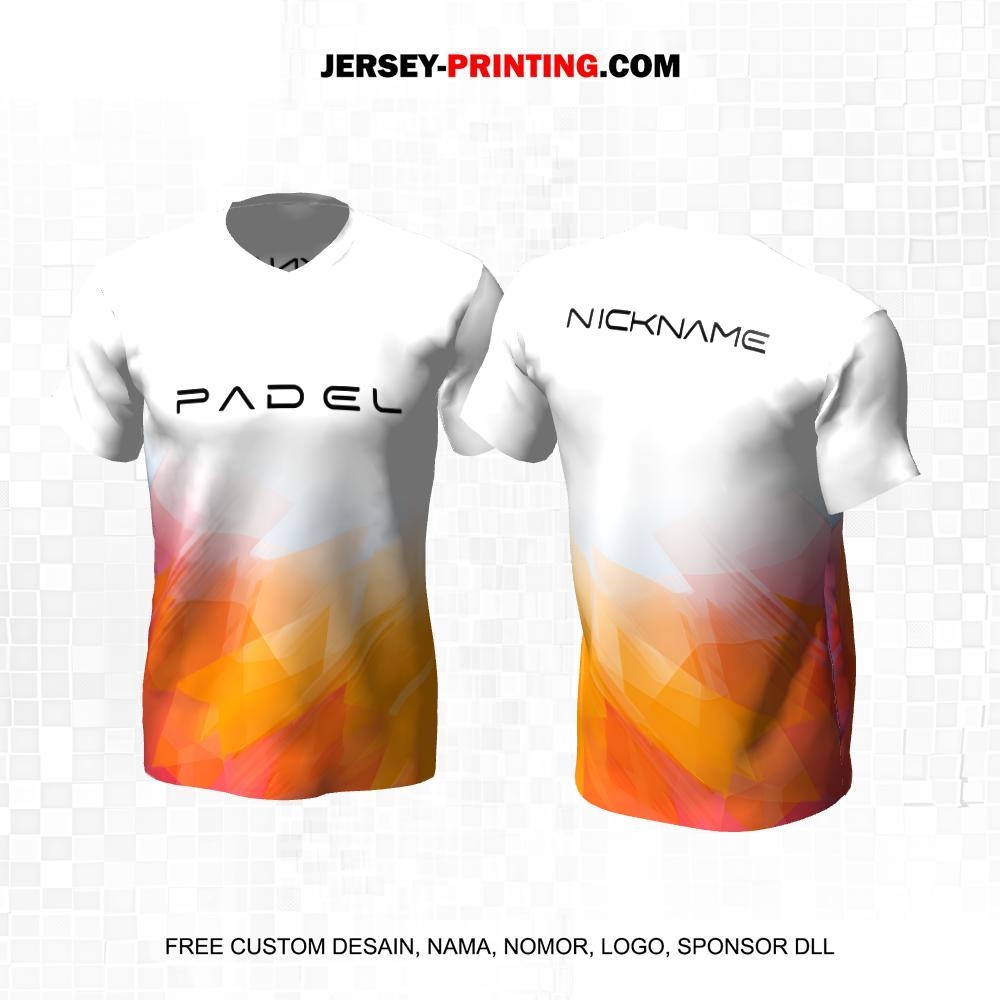 Jersey Olahraga Sport Padel Putih Orange Motif Abstrak 29