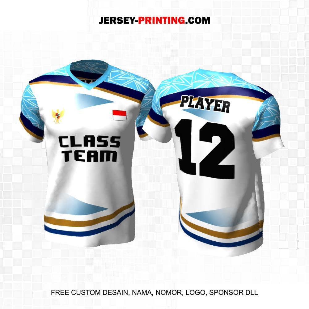 Jersey Kelas Putih Biru Gold Motif Abstrak Garis Triangle 72