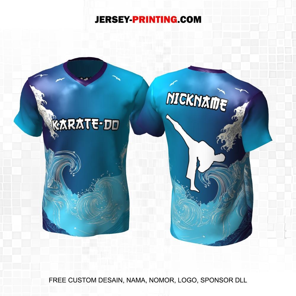 Jersey Karate Biru Motif Ombak 263