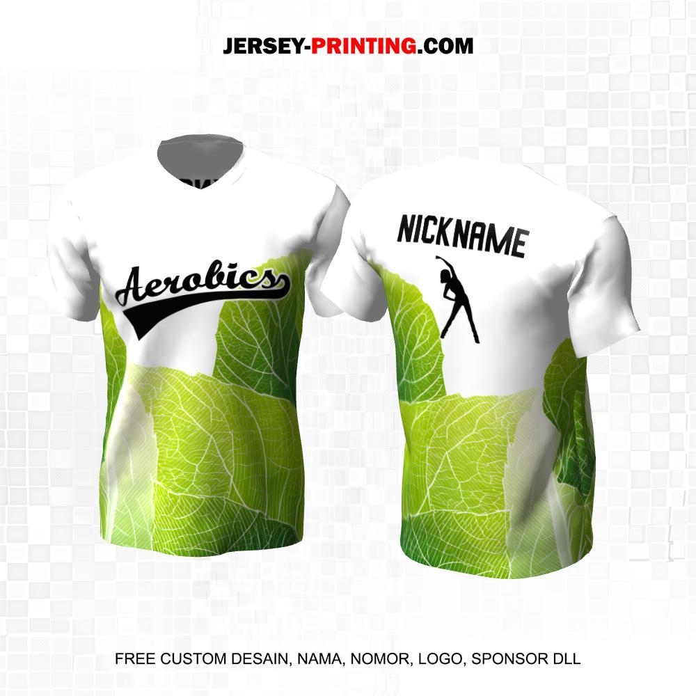 Jersey Olahraga Senam Aerobik Fitness Hijau Putih Motif Daun 36